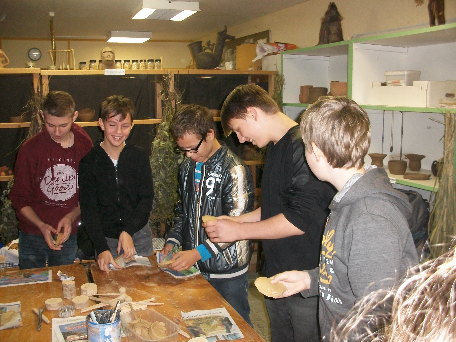 Das Steinzeitdorf bot noch weitere Aktivitäten. Wir durften selbst weben und töpfern. Es war eine interessante und auch lustige Erfahrung. Dabei unterstützten uns bei unseren Fragen die Kussowmitarbeiter tatkräftig und freundlich. Das Getöpferte und das Gewebte durften wir sogar mit nachhause nehmen.